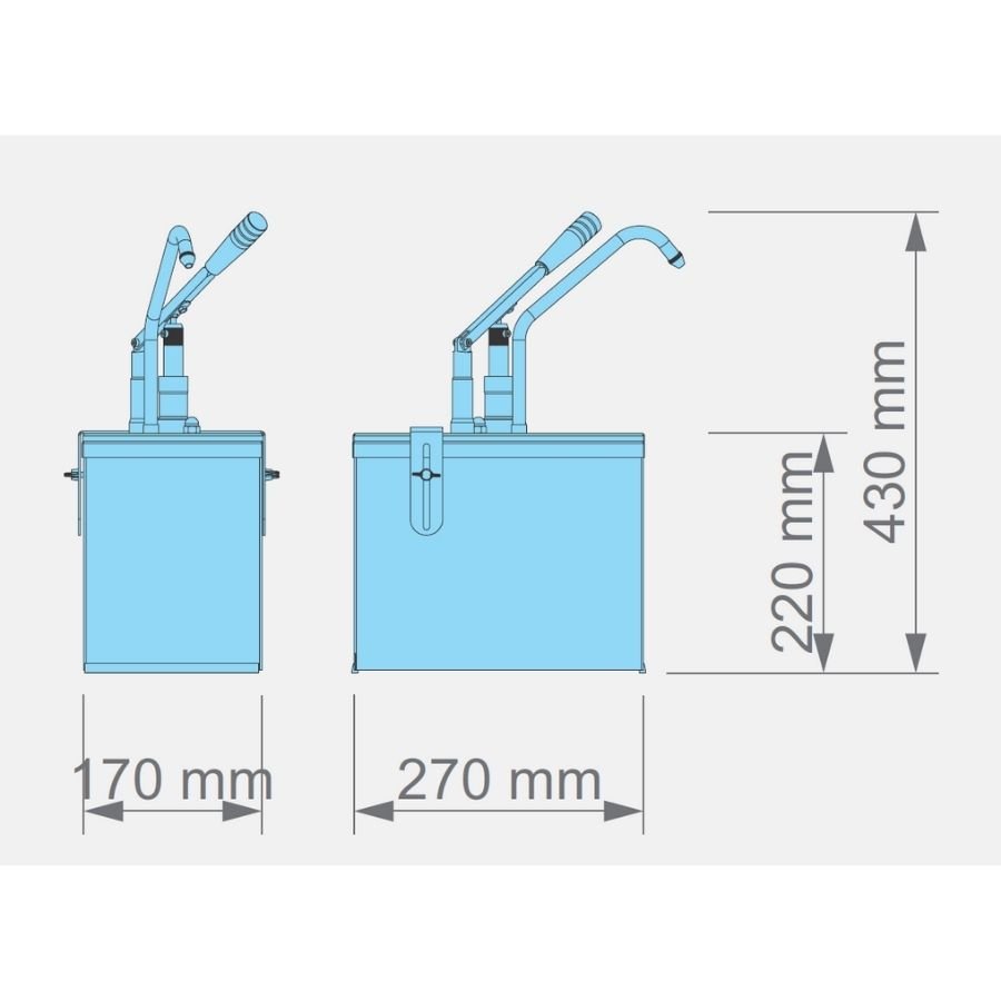 Gastronorm kaplarla uyumlu Kollu Dispenserler, servisinizi daha kolay ve düzenli hale getirecek. · Kol kontrollü servis · GN Gastonorm kapları ile uyumlu · Set 1 / Set2 / Set 3 Tutucularla birlikte sunulur Kalando Sos Pompası Teknik Özellikler · Ürün Ölçüleri: 170 x 270 x 430 mm (h) · Ağırlık: 4,40 kg · Kapasite: 5.25 L · Dozaj: 35 ml (± 5)