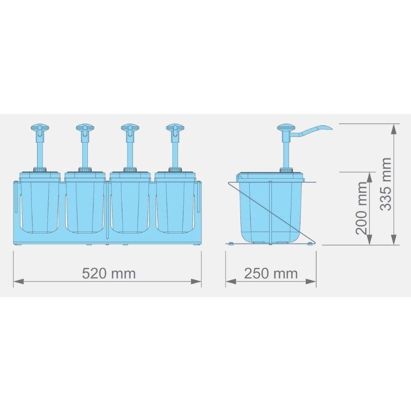 Buton Dispenserler, farklı renk kapak seçenekleri ve dispenser Başlıkları ile birlikte gelir. Sos Kapları mutfak tezgahlarına kolayca yerleştirilebilir ve kendi sos dağıtım çalışma alanlarınızı oluşturmanıza olanak tanır. · Dayanıklı Plastik Dispenser ünitesi · 1,9 Lt. Sos Kabı · Renk seçenekli plastik kapak · Set 1 / Set 2 / Set 3 / Set 4 Z-Tutucularla birlikte sunulur Kalando Basmalı Sos Pompası Teknik Özellikler · Ölçüler: 520 x 250 x 330 mm (h) · Ağırlık: 3,65 kg · Dozaj: 4 x 30 ml (± 5) · Kapasite: 4 x 1.9 Litre