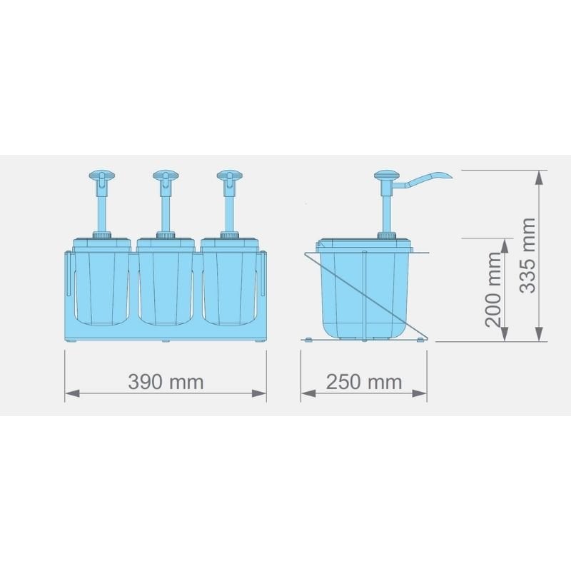 Buton Dispenserler, farklı renk kapak seçenekleri ve dispenser Başlıkları ile birlikte gelir. Sos Kapları mutfak tezgahlarına kolayca yerleştirilebilir ve kendi sos dağıtım çalışma alanlarınızı oluşturmanıza olanak tanır. · Dayanıklı Plastik Dispenser ünitesi · 1,9 Lt. Sos Kabı · Renk seçenekli plastik kapak · Set 1 / Set 2 / Set 3 / Set 4 Z-Tutucularla birlikte sunulur Kalando Basmalı Sos Pompası Teknik Özellikler · Ölçüler: 390 x 250 x 330 mm (h) · Ağırlık: 2,75 kg · Dozaj: 3 x 30 ml (± 5) · Kapasite: 3 x 1.9 Litre
