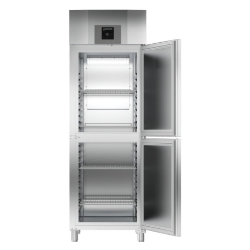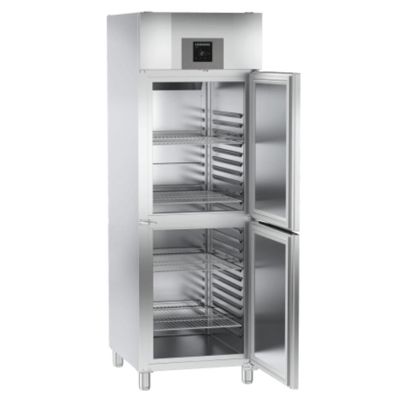 GN 2/1 iç mekana sahip Liebherr GKPv 6577 modeli, 464 litrenin üzerinde soğutma kapasitesi sunar. Sıcaklık aralığı +1°C ile +15°C arasında ayarlanabilir. İç haznedeki önceden şekillendirilmiş kanallar sayesinde paslanmaz çelik dolabın temizlenmesi kolaydır.