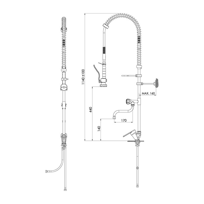 · Ön yıkama duşunun su basıncı şebeke basıncına bağlıdır.