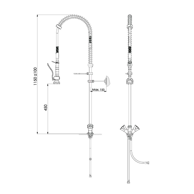 · Ön yıkama duşunun su basıncı şebeke basıncına bağlıdır.