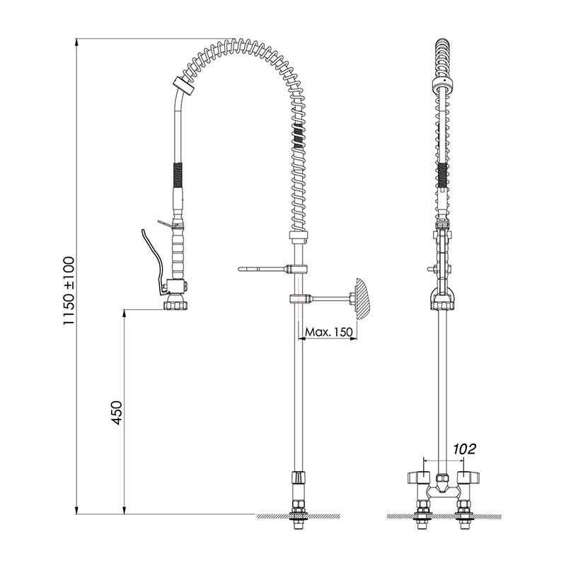 · Ön yıkama duşunun su basıncı şebeke basıncına bağlıdır.