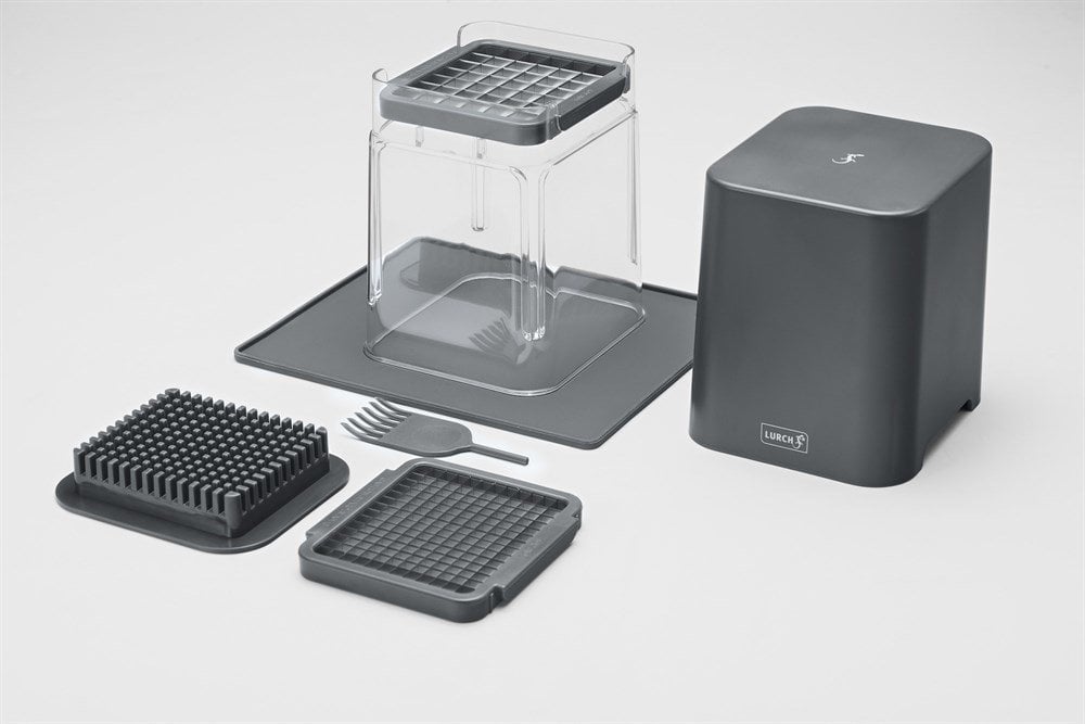 Lurch Kubus Doğrayıcı ile iki farklı bıçak kalıbı kullanarak üç farklı şekilde gıdalarınızı doğrayabilirsiniz. Küp ve Çubuk bıçağı aralıkları 13 mm.