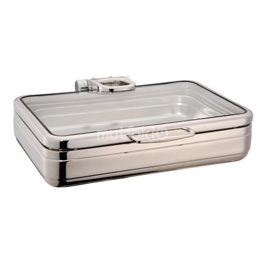 Lux Chafing Dish Hidrolik Cam Kapak Kare 1/2 GN G: 465 D: 315 Y: 180 KAPASİTE :4 lt