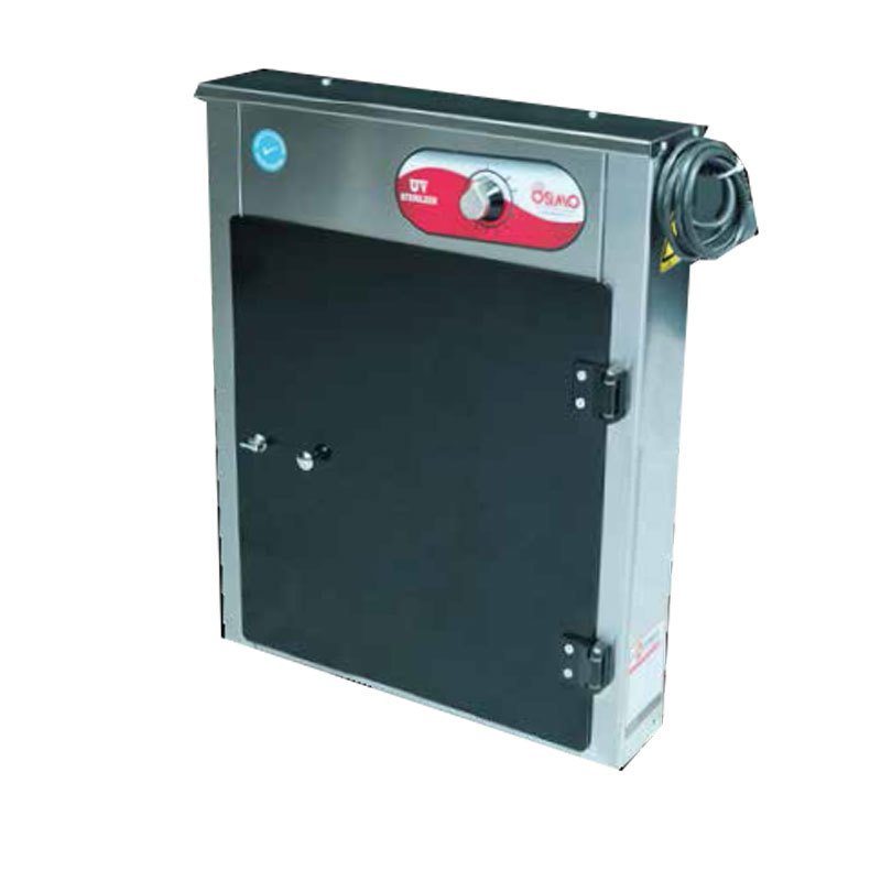 Osimo Bıçak Sterilizatörü, 10 Bıçak Ultraviyole-C lambası sayesinde içine koyulan tüm bıçak ve diğer takımları mikrop ve bakterilerden arındırır ve uzun süre muhafaza eder, kapı açıldığında emniyet switchi sayesine göze zararlı UV ışığı otomatik olarak kapanır. Teknik Özellikler Ürün Kodu: OHE.ST.10 Enerji: 220 V mutfak10.com Ağırlık: 8 Kg Ebat:13x52x60 cm