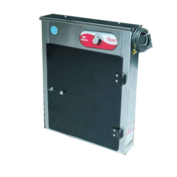 Osimo Bıçak Sterilizatörü, 20 Bıçak Ultraviyole-C lambası sayesinde içine koyulan tüm bıçak ve diğer takımları mikrop ve bakterilerden arındırır ve uzun süre muhafaza eder, kapı açıldığında emniyet switchi sayesine göze zararlı UV ışığı otomatik olarak kapanır. Teknik Özellikler Ürün Kodu: OHE.ST.20 Enerji: 220 V mutfak10.com Ağırlık: 13 Kg Ebat:13x96x60 cm