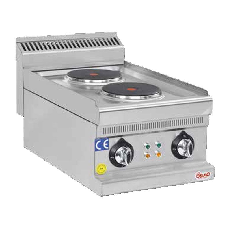 Osimo Elektrikli Ocak, 2 Pleyt, 230 V, 4 kW Kademeli şalter. mutfak10.com Kolay temizlenebilir ve hijyeniktir. Paslanmaz çelik gövde Teknik Özellikler Ürün Kodu:O600.SOE.460 Ebatlar: 400x630x270 mm Kapasite: 2 PLEYT Enerji Güç: 230V 4 kW Ağırlık:14 Kg