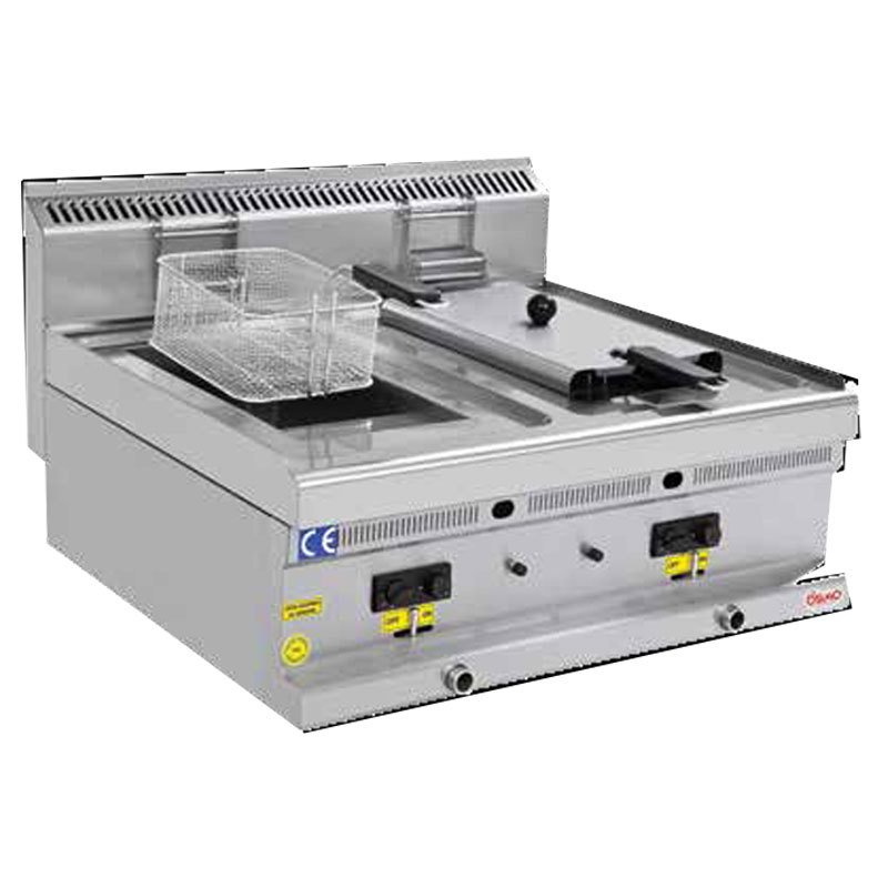 Osimo Gazlı Fritöz, 600 Seri, 8+8 Litre mutfak10.com Lpg ve Ng ile çalışabilme özelliği. Magnet emniyet ventilli musluklar. Paslanmaz elik sepetler. Tahliye musluğu ile emniyetli yağ boşaltma. Limit termostat. Kolay temizlenebilir ve hijyeniktir. Paslanmaz çelik gövde. Teknik Özellikler Ürün Kodu: O600.SFG.660 Ebatlar:600x630x270 mm Kapasite: 8+8 Litre Güç: 14 kW Ağırlık: 27 Kg