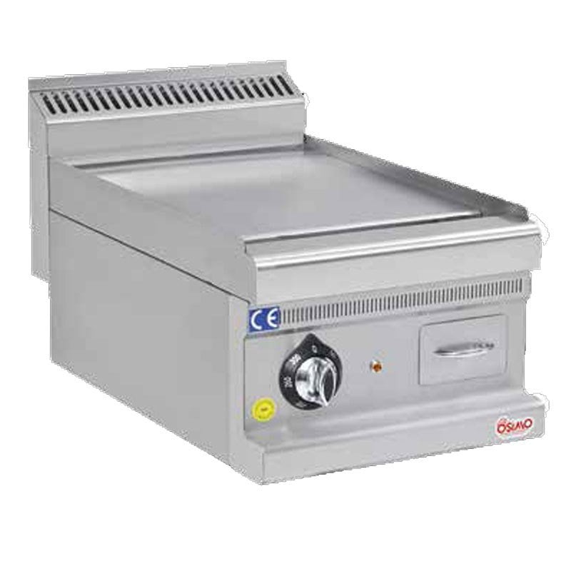 Osimo Gazlı Izgara, 700 Seri, 40×70 cm, Düz Pleyt, 400 V Lpg ve Ng ile çalışabilme özelliği. Magnet emniyet ventilli ve pilotlu musluklar. Tam modüllerde iki bölgeli pişirme. Her brulör için piezzo çakmak ile kontrol. Çıkarılabilir yağ toplama haznesi. Kolay temizlenebilir ve hijyeniktir. Paslanmaz çelik gövde. Teknik Özellikler: Ürün Kodu: O700.SIG.470 mutfak10.com Ebatlar (mm): 400x700x270 Enerji Güç: 8 kW Ağırlık: 44 Kg * Üst tablası pleyt krom talep etmeniz halinde müşteri temsilcimizden fiyat teklifi talep ediniz. * Oluklu pleyt ızgara olarak talep etmeniz halinde müşteri temsilcimizden fiyat teklifi talep ediniz.