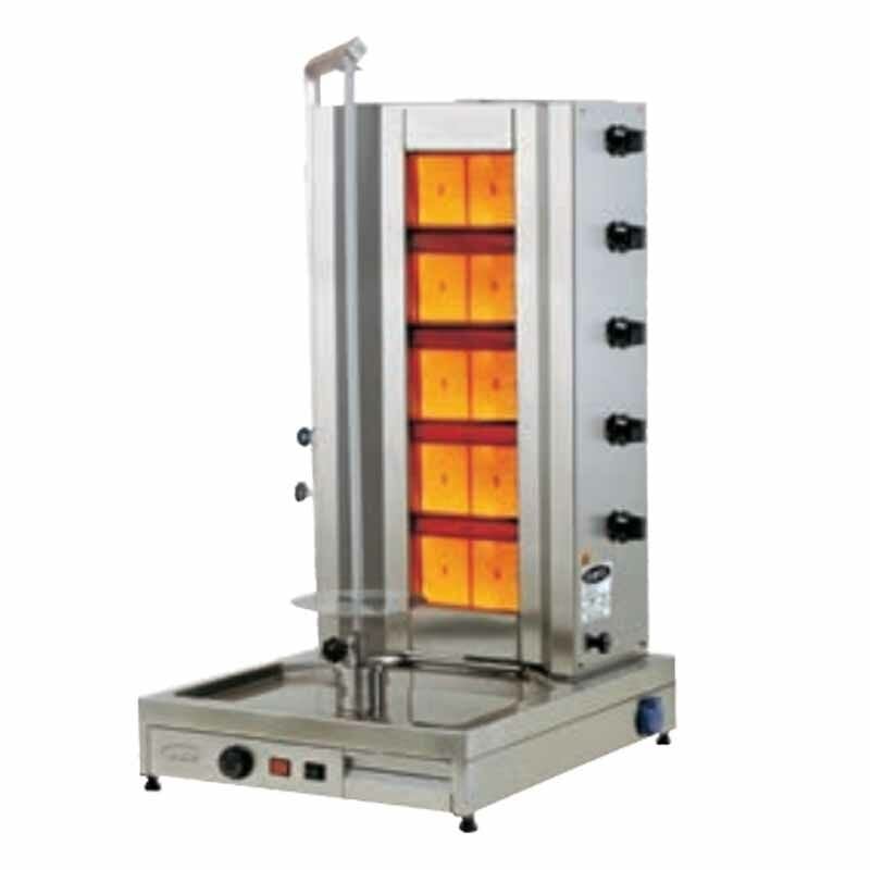Profesyonel veya ticari mutfaklarda etin homojen bir şekilde pişirilmesini sağlayan bu döner ocağı, alt kısmında bulunan 5 radyanlı döner bölmesi ve alttan motorlu tasarımıyla kullanıcıya kolaylık sağlar. Gazla çalışan modeli, hızlı ve hassas pişirme performansı sunar. Öztiryakiler kalitesiyle üretilen bu döner ocağı, restoranlar ve gıda işletmeleri için ideal bir seçenektir.
