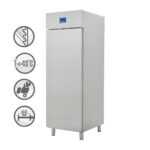 Yüksek hijyen standartlarına uygun özel kalıplarda imal edilmiş raf kızakları ve radüslü iç taban ve monoblok tasarım.