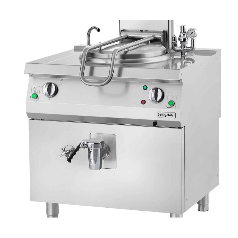 * Yuvarlak kazana sahip kaynatma tencereleri birçok farklı yemek, çorba ve sos yapma imkanı sağlamaktadır. kolaylığı sağlanmıştır. mekanizması kapağın kolay açılıp kapanmasını sağlamaktadır. buhar oluşturulmaktadır ve bu sayede kaynatma tencerelerinin kazan içi, yan ve taban bölümlerinde homojen ısı dağılımı sağlanmaktadır. sağlamaktadır. Güvenliği arttırmak için emniyet tertibatlı gaz musluğu ve alev denetleme için termokupl kullanılmıştır. şekilde artmasını engellemektedir. buhar tahliye imkanı sağlanmıştır. kolay çalıştırma imkanı sağlanmıştır. Ayrıca panelde bulunan sinyal lambaları ile çalışma veya ateşleme gibi durumlar izlenebilmektedir. ön panelden selenoid valf ile kontrol edilebilmektedir. Cihazların üst tablasında bulunan krom kaplı batarya ile kazan doldurulabilmektedir. Cidar su seviyesi düştüğü zaman rezistansı ve kazanı korumak için emniyet termostatı kullanılmıştır. |