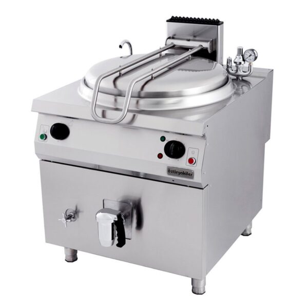 · Monoblok kazan yapısı sayesinde ürünlerin dayanıklılığı arttırılmış ve temizlik kolaylığı sağlanmıştır. · Çift cidarlı kapak izolasyon seviyesini arttırmaktadır. Ayarlanabilir yaylı kapak kaldırma mekanizması kapağın kolay açılıp kapanmasını sağlamaktadır. · Kapağın uygun şekilde kapanması ile enerji ve zaman tasarrufu sağlanmaktadır. · Gazlı modellerde paslanmaz çelik mikro delikli brülörler maksimum verim sağlamaktadır. Güvenliği arttırmak için emniyet tertibatlı gaz musluğu ve alev denetleme için termokupul kullanılmıştır. · Enerji tüketimini düşürmek için kazan etrafı izolasyon malzemesi ile kaplanmıştır. · Ön panelde bulunan düğme sayesinde cihazın gücü ayarlanabilmektedir. · Gidaya uyumlu büyük tahliye vanası ile hızlı boşaltma imkanı sağlanmıştır. · İndirekt modellerde bulunan basınç emniyet valfi cidar içindeki basıncın aşırı şekilde artmasını engellemektedir. · Manometre göstergesi kullanıcının cidar iç basıncını görmesini sağlar. · Basınç emniyet grubunda bulunan harici basınç valfi ile cihaz çalışırken manuel olarak buhar tahliye imkanı sağlanmıştır. · Gazlı modellerde bulunan elektronik ateşleme sistemi ile kullanıcılar için kolay çalıştırma imkanı sağlanmıştır. Ayrıca panelde bulunan sinyal lambaları ile çalışma veya ateşleme gibi durumlar izlenebilmektedir. · Sıcak ve soğuk su bağlantısı yapılabilmektedir. Sıcak ve soğuk su giriş ventilleri ön panelden selenoid valf ile kontrol edilebilmektedir. Cihazların üst tablasında bulunan krom kaplı batarya ile kazan suları doldurulabilmektedir. · Gazlı modellerde elektrik beslemesi: 220-240 V / ~NPE /50 Hz.’dir. Öztiryakiler Seri Kaynatma Tenceresi Teknik Özellikler