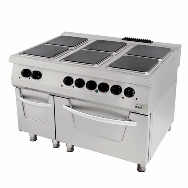 Öztiryakiler 900 Seri Kuzine, Fırınlı, Elektrikli, 6 Açık Ateş, Kare Plate 120x90x85, 6644