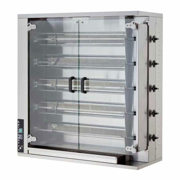 LPG ve Doğalgaz ile çalışabilme özelliğine Piliç Çevirme Makinemiz 5 şişle 20-25 piliç pişirme kapasitesine sahiptir. Alt kısmında yaz süzgeci mevcuttur. Cam kapaklı ve kolay temizlenebilir.