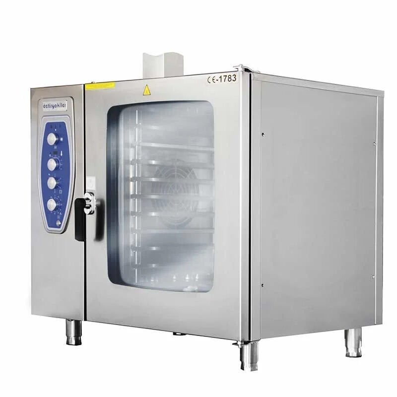 Öztiryakiler OKFE 102 Fırın, endüstriyel mutfaklarda yüksek verimlilik sunan elektrikli bir konveksiyonlu fırındır. 10 GN 2/1 veya 20 GN 1/1 tepsi kapasitesine sahip olması sayesinde geniş miktarda yiyeceği aynı anda pişirme imkânı sunar. Paslanmaz çelik gövdesi ve kullanıcı dostu özellikleriyle öne çıkan bu fırın, profesyonel işletmelerin tercih ettiği güvenilir bir çözümdür.