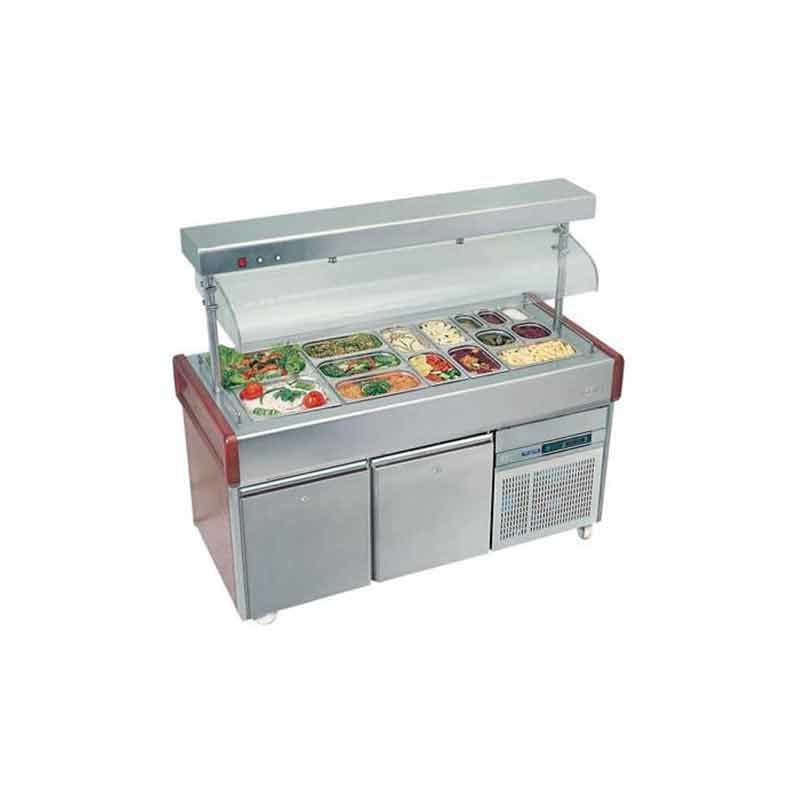 Cihazın alt bölümünde bulunan çift kapaklı GN 1/1-100 kapasiteli bölümlerin soğutulması ile salataların stoklanması sağlanmaktadır.