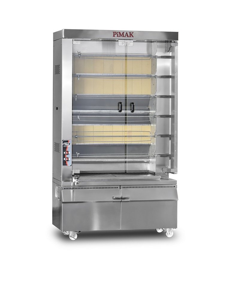 Pimak PI6/M17KB Kollu Piliç Çevirme Makinesi 8 Şiş 40 Piliç Kapasiteli Gazlı