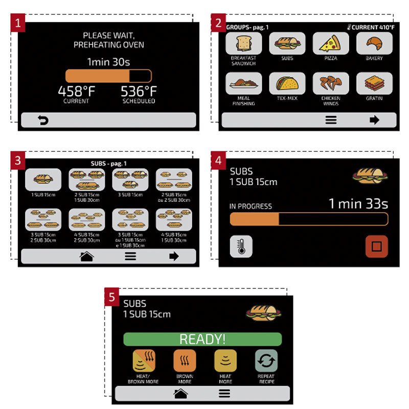 Manuel girişe ek olarak, fırın tarifleri yüklemek ve indirmek için bir USB portu kullanır. Dokunmatik ekran ve proglama arayüzü