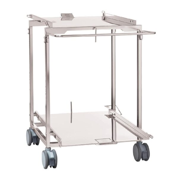 RATIONAL Mobil Tepsi Standı İçin Taşıma Arabası; Mobil fırın rafının masa üstü ünitelerde kolay yüklenmesi ve boşaltılması için kullanılabilen büyük, sessiz ve hijyenik tandem tekerlekler sayesinde yiyecekleri güvenle taşımanızı sağlayan standın yüksekliğine göre uyarlanmış ve tezgahlar için yüksekliği ayarlanabilir versiyona sahiptir.