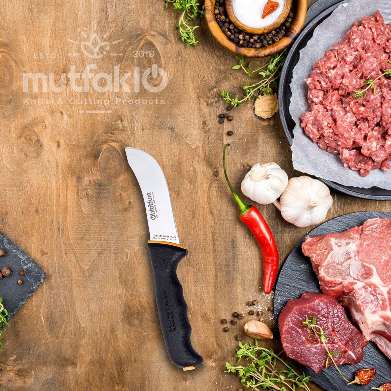 Platinium Bıçaklarımız T5 Fransız/Alman Çubuk Çeliğinden imal edilmektedir. Kauçuk ve Termo plastik alaşımlı sapı sayesinde hem ergonomik bir ürün olup hem de kaymaz bir sapa sahiptir