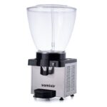 Samixir S40 Panaromik Dijital Soğuk İçecek Dispenseri, 40 L, Inox Dijital termostat sayesinde sıcaklık kolayca ayarlanır, termostat belirlenen ısıyı korur, dijital gösterge anlık ısıyı gösterir. Manyetik fıskiyeli karış tırma sistemi sayesinde; parçacıksız meyve sularının, şalgamın soğutulması ve dağıtılması için tasarlanmış tezgah üstü dispenser. Geniş soğutma tabanı sayesinde içecek hızlı ve son damlasına kadar eşit soğur, klasik ürünlere göre %50’ye varan güç tasarrufu sağlar. Pratik musluk sistemi; tek el kullanılarak rahatça içecek alabilmeyi sağlar. Geniş musluk hortumu hızlı dolum sağlar ve kolaylıkla sökülüp temizlenebilir. Manyetik fıskiye sistemi sayesinde hazne içinde bulunan içeceğin alt motor bölümüne sızma riski ortadan kalkar, bu sayede motorun ömrü uzar. Fıskiyenin eşit dağıtım özelliği sayesinde içecek azalsa bile iştah açıcı görsellik değişmez. Kusursuz temizlik ve hijyen için içecek ile temas eden tüm parçalara kolayca ulaşılır ve hızlı bir şekilde temizlenebilir. Polikarbonat hazne darbeye dayanıklı ve gıda kullanımına uygundur. Küçük ve orta ölçekli işletmeler için uygundur. Parçacıklı içeceklere uygun değildir. Damlalıkta bulunan seviye göstergesi sayesinde atık suyun taşmadan önce boşaltılması gerektiği rahatlıkla fark edilir. Üründe karıştırma sistemi mevcuttur. Samixir S40 Panaromik Dijital Soğuk İçecek Dispenseri Teknik Özellikler:  www.mutfak10.com