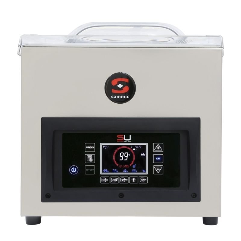 · 3,9” LCD renkli ekrana sahip dijital kontrol paneli: bir bakışta tüm bilgiler. · Aydınlatmalı dokunmatik klavye, sıvıların sıçramasına karşı korumalıdır. · Ambalajın dayanıklılığını sağlamak için çift conta sistemi. · Hem hazne hem de gövde paslanmaz çelikten imal edilmiştir. · Son derece dayanıklı polikarbonattan üretilmiş şeffaf kapak. · Programların hafızası: kilitleme imkanı ile 25 farklı vakum programını saklama kapasitesi. · Pompayı kurutmak için kuru yağ programı. · Yağ değişimleri için çalışma saatleri sayacı. · 230V / 50-60Hz · NSF sertifikalıdır. Sammic Vakumlu Paketleme Makinesi; · Stok Kodu: SU-310 · Ürün No: 1140730 · Vakum Pompası: 10 m3/h · Bar Uzunluğu: 320 mm · Basınç: 2 mbar · Ölçüler: 337x431x307 mm