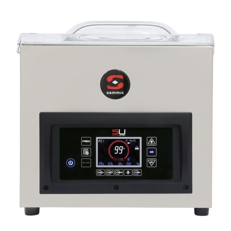 · 3,9” LCD renkli ekrana sahip dijital kontrol paneli: bir bakışta tüm bilgiler. · Aydınlatmalı dokunmatik klavye, sıvıların sıçramasına karşı korumalıdır. · Ambalajın dayanıklılığını sağlamak için çift conta sistemi. · Hem hazne hem de gövde paslanmaz çelikten imal edilmiştir. · Son derece dayanıklı polikarbonattan üretilmiş şeffaf kapak. · Programların hafızası: kilitleme imkanı ile 25 farklı vakum programını saklama kapasitesi. · Pompayı kurutmak için kuru yağ programı. · Yağ değişimleri için çalışma saatleri sayacı. · 230V / 50-60Hz · NSF sertifikalıdır. Sammic Vakumlu Paketleme Makinesi; · Stok Kodu: SU-316 · Ürün No: 1140742 · Vakum Pompası: 16 m3/h · Bar Uzunluğu: 320 mm · Basınç: 2 mbar · Ölçüler: 337x431x307 mm