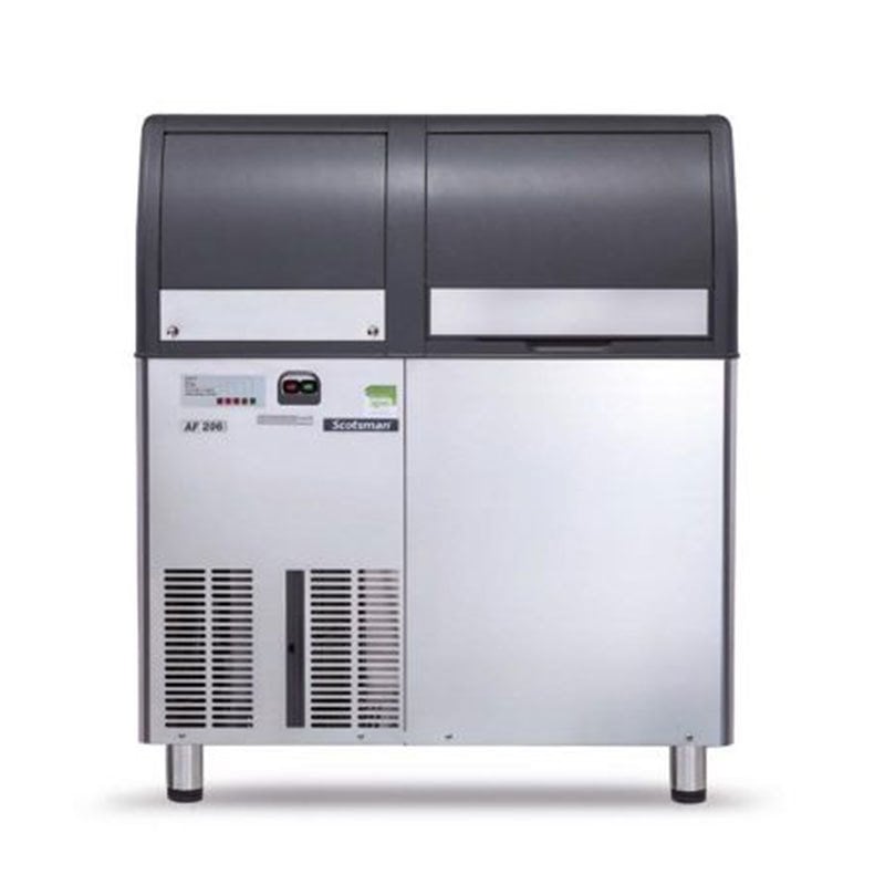 Scotsman AF206 Kar Buz Makinesi, Günlük 200 Kg Üretim, 60 Kg Hazne Kapasitesi, 760 W Bakır borulu, aluminyum panelli evaporatör, Kolay kapanan kayar kapaklı Paslanmaz çelik; AISI 304 18/10 Hava filtreli kondanser mutfak10.com Filtre temizleme uyarı alarmı Özel tasarruflu enerji tüketim sistemi Drenaj pompalı Teknik Özellikler Ürün Kodu: AF206 Üretim Kapasitesi: 200 Kg/Gün Hazne Kapasitesi: 60 Kg Enerji Güç: 760 W Ebatlar: 905x605x1096 mm – AF Serileri kendinden haznelidir. * MF Serileri sadece buz yapıcı modüllerdir. Altına önerilen haznelerden eklenerek kullanılabilir. – Superflake buz (Daha büyük kar buz) siparişleriniz için önceden bilgi veriniz.