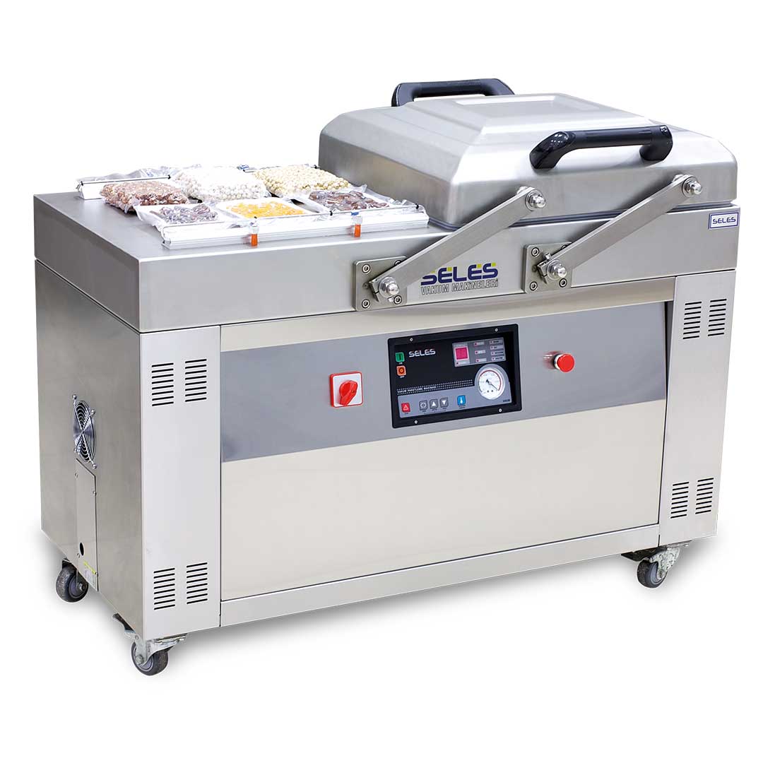 · Portatif kullanımı ile her yere kolayca taşınabilir. · Güçlü ısıtıcısı ile uzun süreli yapıştırma imkanı vardır. · Avrupa standartlarına uygun üretilmiştir. · Ayarlanabilir vakum süresi mevcuttur. · Değiştirilebilen yapıştırma derecesi · Özel işlenmiş ısıtıcı ile güçlü vakum yapma imkanı sağlar. · Kolay sökülebilen teflon ünitesi sayesinde kolay temizlenebilir. · Opsiyonel gıda gazı · 2 x Çift çeneye sahip olması sebebiyle bir tarafta vakumlama işlemi yapılırken, diğer tarafta hazırlık yaparak işlem süresi azalmış olacaktır. Seles Vakum Makinesi Teknik Özellikler · Vakumlama Alanı: 500 x 450 x 150 mm · Çene Sayısı: Çift Çeneli · Pompa: 2×20 m3/h · Çene Ölçüsü: 50 Cm