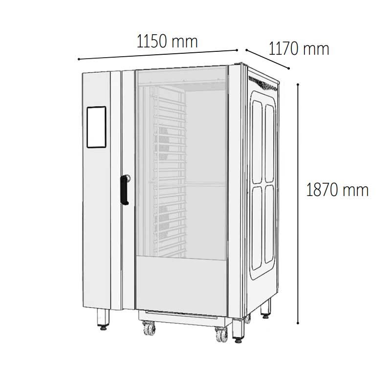 Kapasite: 40 adet GN-1/1 boyutunda tepsi veya 40 adet GN-1/1 boyutunda ızgara kapasitesine sahiptir.