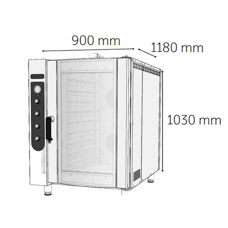 9 adet 40×60 cm ölçülerinde tepsi kapasitesine sahiptir, böylece aynı anda daha fazla ürün hazırlama imkânı sunar.