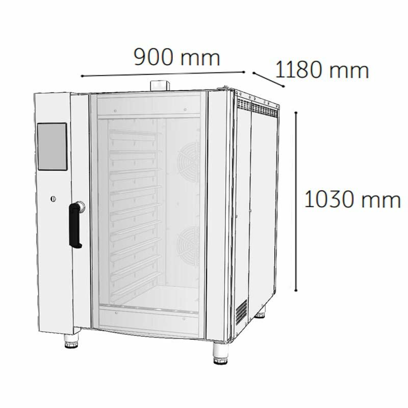 9 adet 40×60 cm ölçülerinde tepsi kapasitesine sahiptir, böylece aynı anda daha fazla ürün hazırlama imkânı sunar.